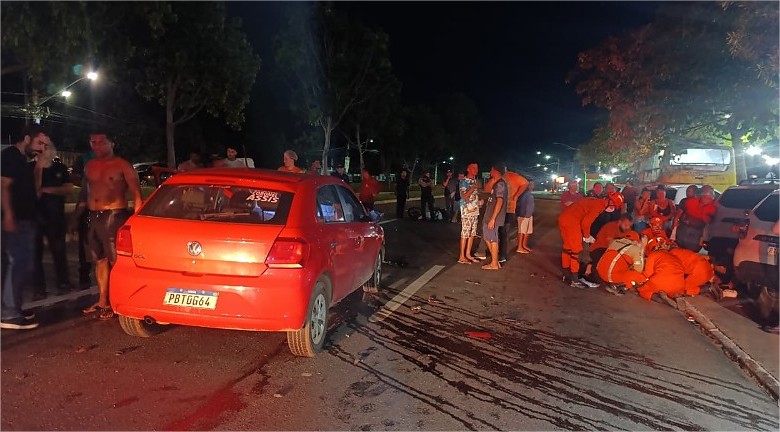 Um Gol vermelho bateu de frente com uma moto biz branca na avenida do CPA, próximo ao ginásio Verdinho na noite deste domingo (29), por volta das 23h. Testemunhas relataram que o carro trafegava em alta velocidade, cerca de 160km/h, quando colidiu com a moto e arremessou o piloto e o garupa no asfalto. Imagens registradas no local mostram a gravidade do impacto, que deixou a parte frontal de um dos automóveis completamente destruída.