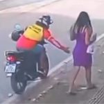 Tarado em motocicleta é flagrado passando a mão nas nádegas de mulher em plena...