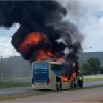 Ônibus com pelo menos 15 passageiros pega fogo em trecho da BR-364; veja vídeo