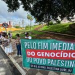 Grupo se reúne em frente à Igreja São Benedito para pedir cessar-fogo na Palestina
