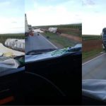 Acidente envolvendo três carretas deixa dois motoristas mortos e trânsito lento na rodovia BR-163