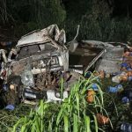 Caminhão cai em ribanceira na Serra São Vicente e condutor fica ferido