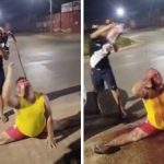 Torcedor do Fluminense faz espacate e toma banho de vinho em Cáceres; veja vídeo