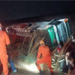 Ônibus com 33 passageiros tomba em rodovia; nove pessoas ficam feridas