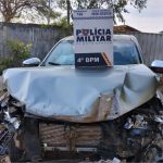 Suspeito de furtar caminhonete foge da polícia em alta velocidade e bate em muro