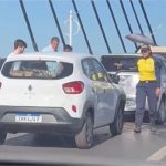 Pneu de carro estoura e provoca engavetamento na ponte Sérgio Motta