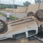 Motorista perde controle, capota veículo e derruba radar em MT
