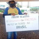 Grupos minoritários de imigrantes venezuelanos carregam pelas ruas de Cuiabá placas com os seguintes dizeres: “preciso de ajuda. O comunismo na Venezuela me fez...