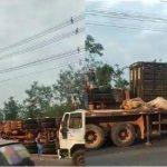 Caminhão boiadeiro tomba em avenida de Cuiabá e bois morrem; vídeo