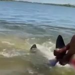 Rapaz agarra boto-cor-de-rosa pela cauda e é autuado por maus-tratos; vídeo