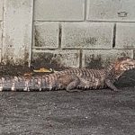 Jacaré é resgatado pelos bombeiros em estacionamento em Cuiabá