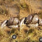 Sucuri fêmea é flagrada engolindo outra da espécie em MT; vídeo