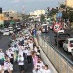 Enfermeiros fazem grande manifestação no centro em protesto por piso salarial