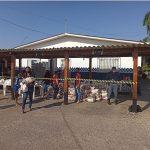Famílias que fazem fila para receber ossos de açougue em Cuiabá ganham cestas básicas