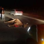 Táxi atropela cavalo em avenida sem iluminação; animal morre na hora