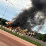 Vídeo mostra Incêndio destruindo carreta cegonha com vários carros em MT