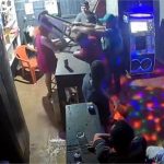 Uma câmera de segurança registrou o momento em que um cliente agrediu, com uma banqueta de madeira, uma funcionária de uma casa noturna em...