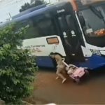 Ônibus desvia de buraco e quase esmaga mãe e filha em VG; vídeo