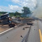 Caminhoneiro morre carbonizado e outro preso às ferragens em batida na BR-070; vídeo