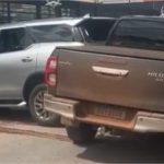Um vídeo que circula nas redes sociais mostra o motorista de uma Toyota SW4 arrastando uma Toyota Hilux que estava trancando a garagem de...