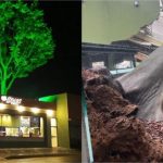 Árvore centenária cai sobre restaurante durante temporal em MT