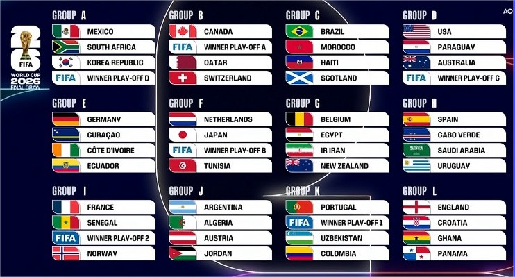 Enfim, a Fifa sorteou, nesta sexta-feira (5), os 12 grupos para a disputa da Copa do Mundo 2026, no Kennedy Center, em Washington (EUA). A competição, que será realizada no Canadá, Estados Unidos e México, conta pela primeira vez com 48 seleções para esta edição.