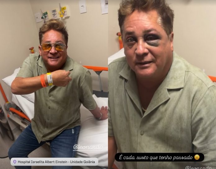 O cantor Leonardo assustou os fãs ao aparecer com o olho roxo e inchado em vídeos publicados pela mulher, Poliana Rocha, no hospital na tarde desta sexta-feira (24). “É cada susto que tenho passado”, disse ela, pedindo para o cantor explicar aos seguidores o que havia acontecido.