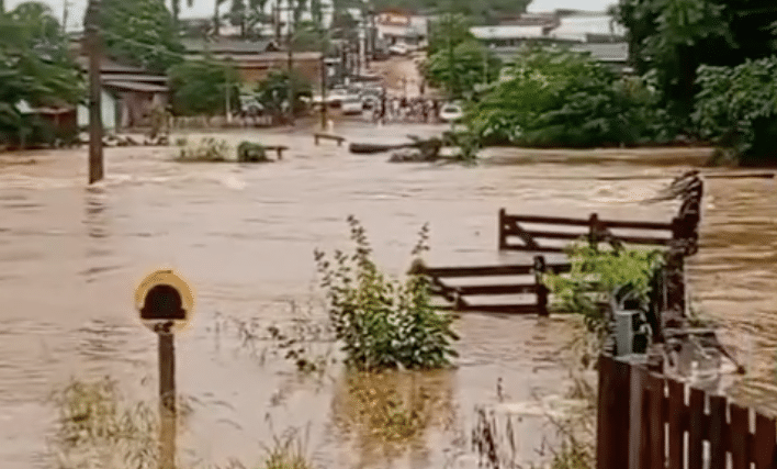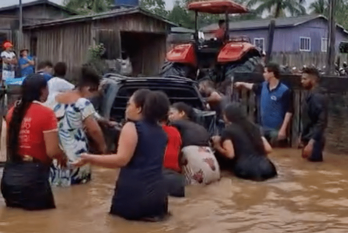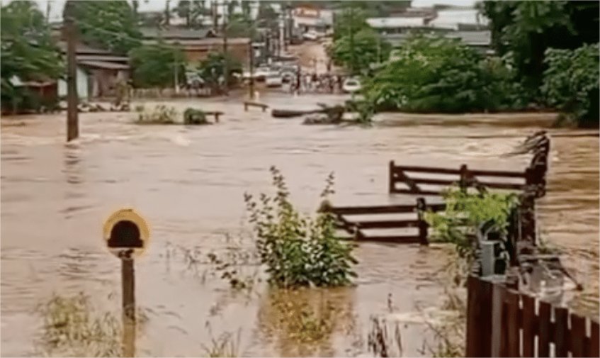 Imagens registradas por moradores mostram famílias sendo resgatadas de suas casas, com auxílio de tratores para retirada de pertences e veículos que estavam parcialmente submersos. Foi registrado o momento que uma casa foi arrastada pela força da correnteza, além de uma ponte que teve sua passarela arrancada e levada nas águas.