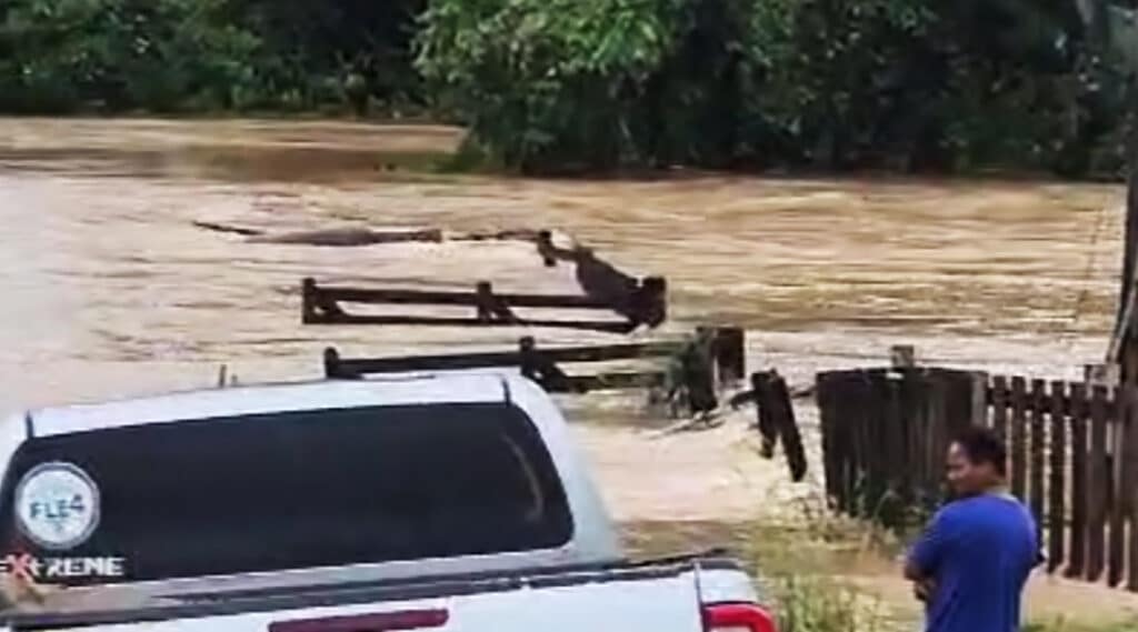 Uma intensa chuva causou enchente no distrito de Nova União, município de Cotriguaçu (954 km de Cuiabá), esta manhã. A força das águas arrastou uma ponte e uma residência de madeira. A chuva intensa teria durado cerca de 6 horas, afetando principalmente regiões próximas a rios, que acabaram transbordando.