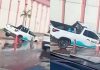 Carro da Águas Cuiabá afunda em cratera da própria empresa; vídeo