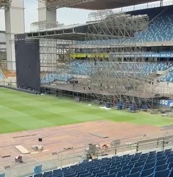 A três dias do show, palco para apresentação do Guns está 60% concluído; vídeo