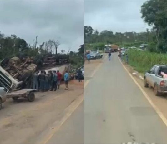 Vídeo mostra moradores saqueando carne de caminhão tombado em MT