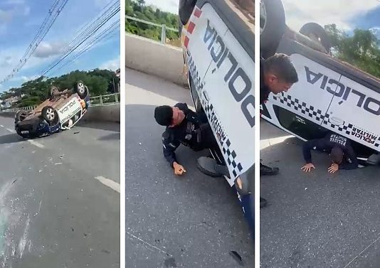 Vídeo: Viatura da PM capota na Miguel Sutil durante perseguição à motociclista; veja o que aconteceu