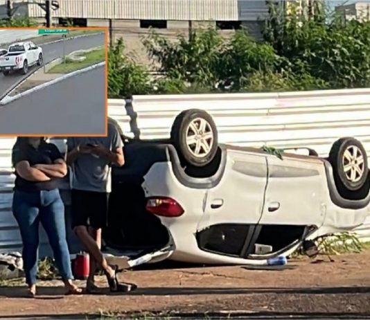 Vídeo registra momento em que carro capota após colisão com caminhonete na Prainha; veja