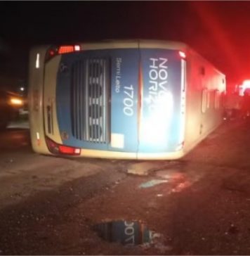 Ônibus tem pane mecânica e tomba na BR-364 em Cuiabá