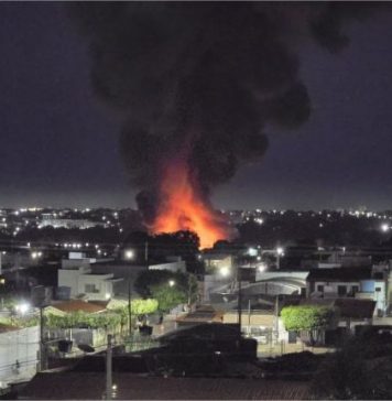 Incêndio de grandes proporções destrói fábrica em Cuiabá; veja vídeo