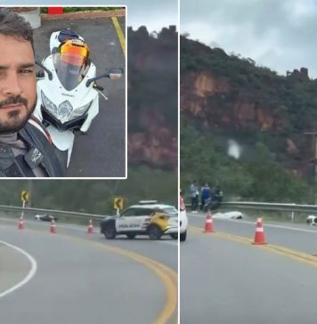 Homem bate moto de alta cilindrada na grade de proteção do Portão do Inferno e...