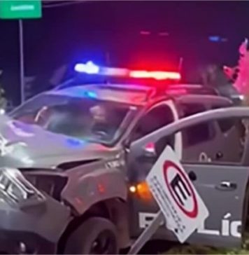 Em acidente, viatura da PM fica destruída ao ser atingida por Kwid em MT
