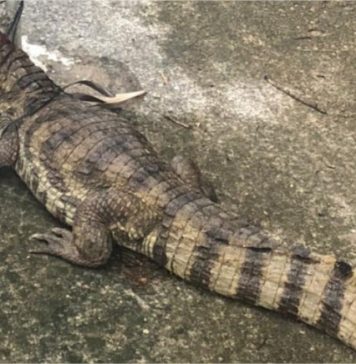 Filhote de jacaré é espancado e amarrado em poste; vídeo