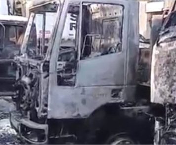 Incêndio atinge pátio de construtora e destrói caminhões em MT; veja vídeo