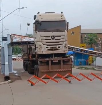 Caminhão com altura acima do permitido derruba portal em Santo Antônio do Leverger; vídeo