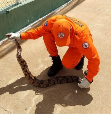 Bombeiros militares resgatam jiboia de 1,5 metro em área de lazer de município