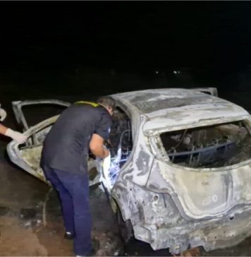 Carro é destruído pelo fogo em Sinop e corpo carbonizado