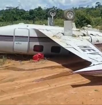 Aeronave com equipe médica sai da pista e capota em MT; vídeo