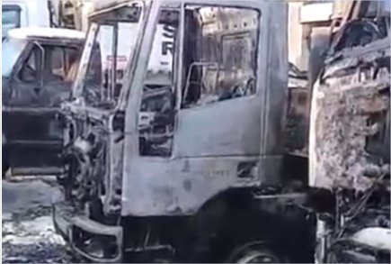 O fogo teria começado em um dos caminhões estacionados no local. As chamas se espalharam rapidamente e danificaram outros veículos que estavam no pátio.