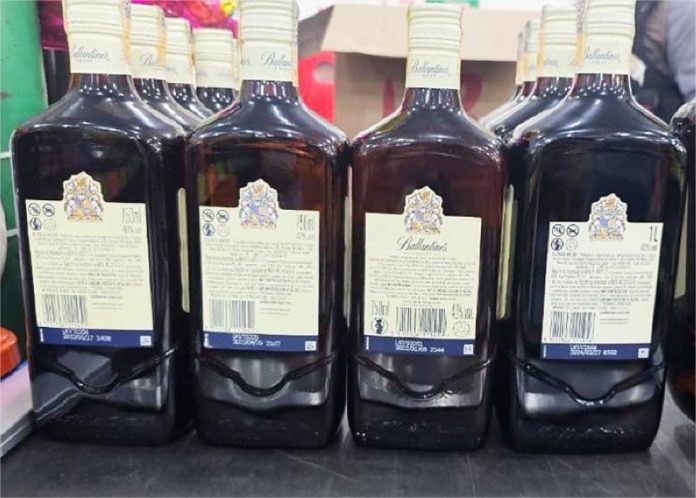 Garrafas de whisky Ballantines suspeitas de pertencerem a lotes de bebidas adulteradas com metanol Foto: PJC