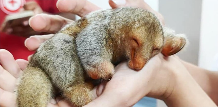 Um filhote de tamanduaí (Cyclopes didactylus) foi encontrado, na noite deste domingo, em meio a uma estrada vicinal, nas proximidades da área urbana de Sorriso. Um casal relatou ter avistado o animal tentando atravessar o trecho e, devido ao risco de atropelamento, o encaminharam até a unidade dos bombeiros.