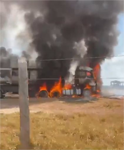 Segundo informações preliminares, a caçamba da carreta teria tocado na fiação da rede elétrica, provocando uma descarga de energia que atingiu o condutor e iniciou rapidamente o incêndio.