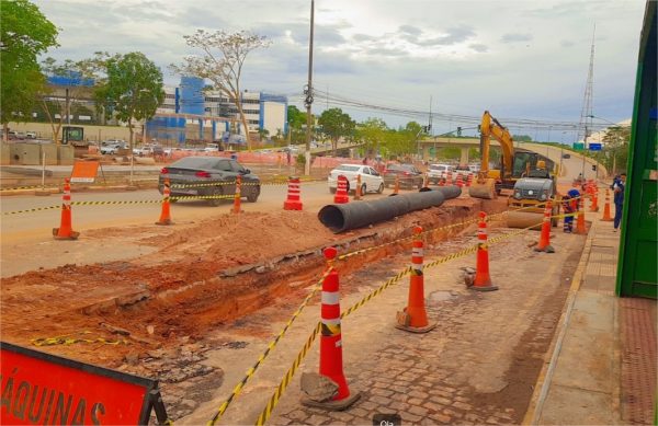 Na Avenida do CPA, continuará o afunilamento em frente ao Shopping Pantanal, onde são executadas escavações para implantação do novo sistema de drenagem. Por esse motivo, a faixa da direita permanece interditada.