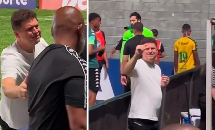 Vídeos que circularam nas redes sociais mostram o momento em que o presidente faz gestos em tom irônico e pede para integrantes da comissão técnica não discutirem com os torcedores. A reação provocou revolta imediata. Um torcedor respondeu aos gritos, afirmando ser trabalhador e criticando a postura do dirigente, além de responsabilizá-lo pela má fase do clube.